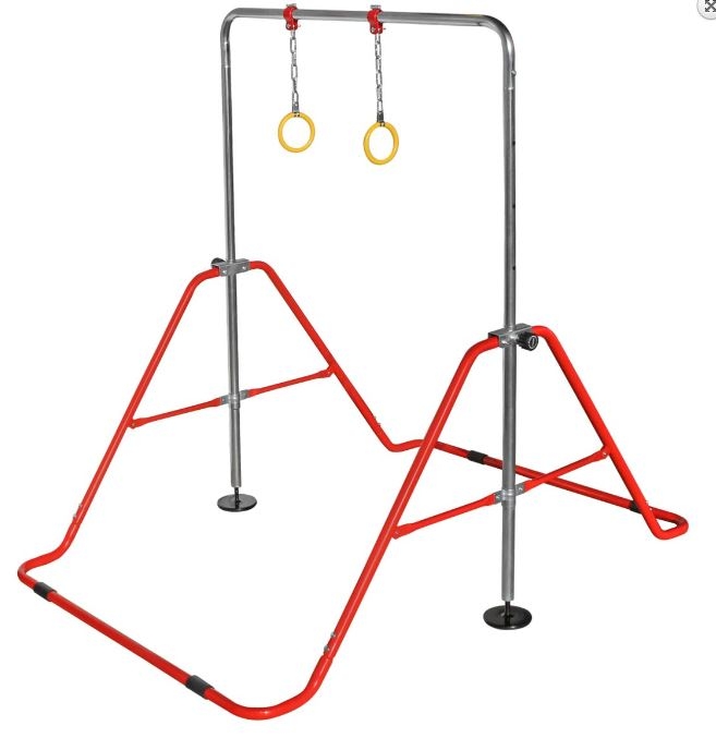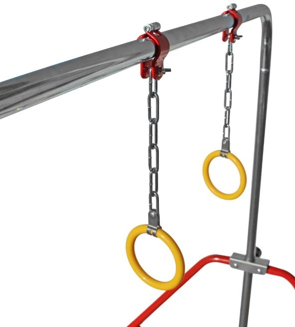 Vaikiškas gimnastikos skersinis su žiedais yra pagalbinė priemonė vaikams. Vaikai gali praktikuoti paprastus gimnastikos elementus namuose.