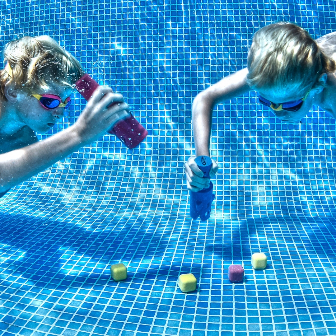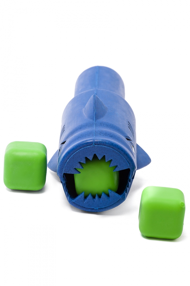 Guminiai kubeliai nuskęs iki baseino apačios, kad plaukikai galėtų pasinerti ir su savo alkanu rykliu juos paimti. Guminiai žandai atidaromi, kad prarytų kubelius. Kas surenka daugumą kubelių, yra nugalėtojas!