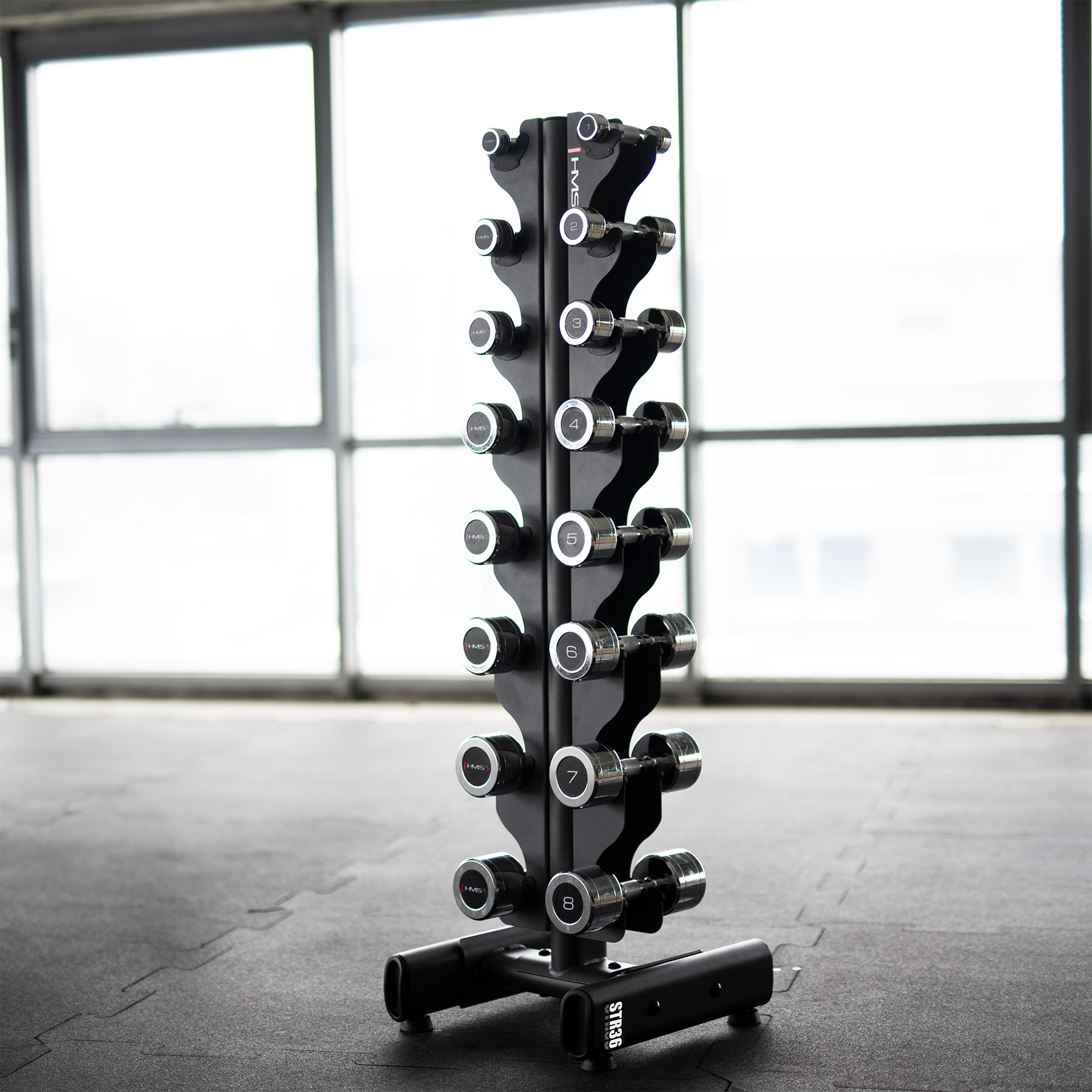 STR36 skirtas ne tik hantams laikyti – tai būdas palaikyti tvarką treniruotės erdvėje, leidžiant sutelkti dėmesį į pratimus. Stovas idealiai tinka laikyti įrangą, naudojamą stiprinimo ir kūno formavimo pratimams, pavyzdžiui, svorių kilnojimui, Pilatesui ar aerobikai.