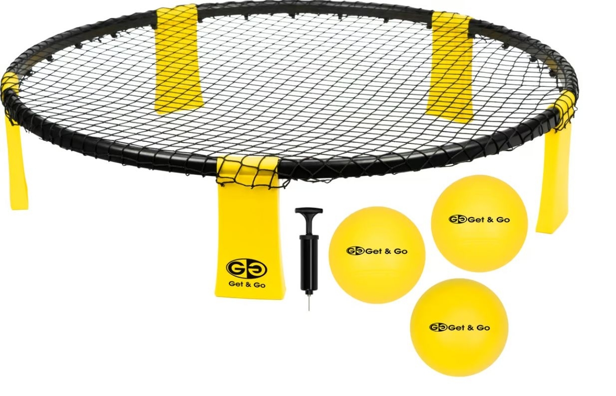 Žaiskite „Smashball“ žaidimą su draugais ir šeima. Nauja ir populiari sporto šaka, žinoma daugeliu pavadinimų, tokių kaip Spikeball, Spyderbal ir Roundnet. „Get&Go“ kamuoliukų rinkinį sudaro apvalus tinklas, kojelės, 3 kamuoliukai, 1 rutulinė pompa ir patogus nešiojimo krepšys, kad galėtumėte pasiimti rinkinį į bet kurią norimą vietą. 2 skirtingų tipų kamuoliukai suteikia papildomos įvairovės. Pavyzdžiui, smailių kamuoliukų rinkinį paimkite dieną paplūdimyje arba popietę parke.